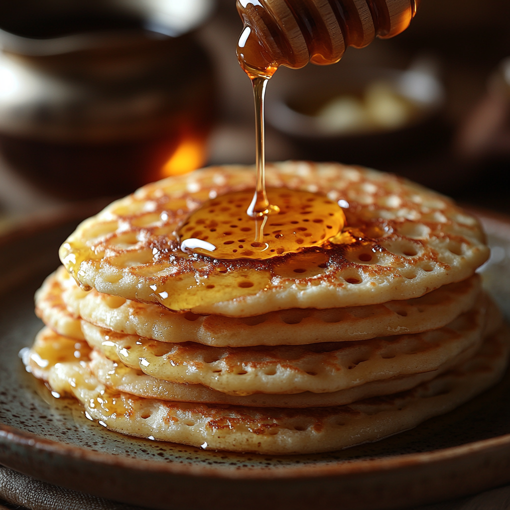 Moroccan Baghrir Recipe (Thousand Hole Pancakes with Honey & Butter)